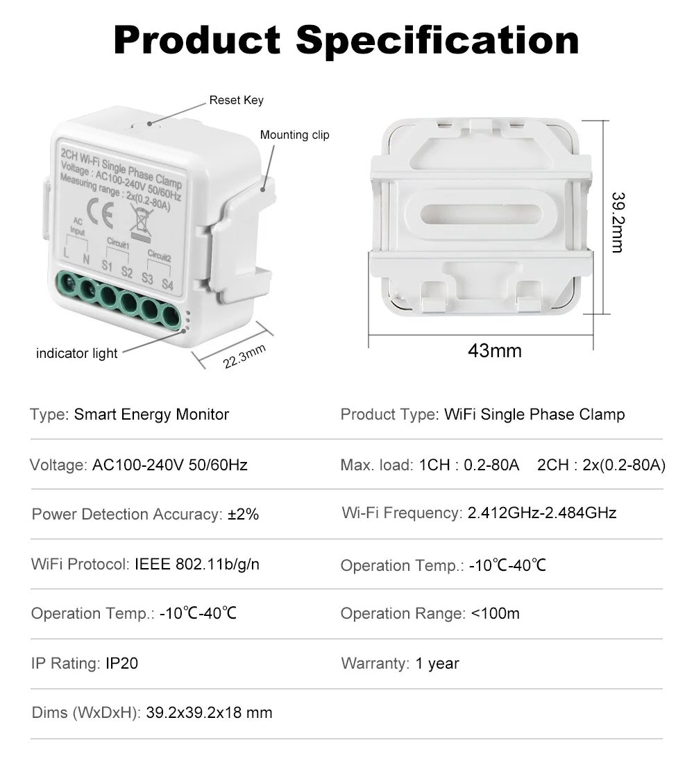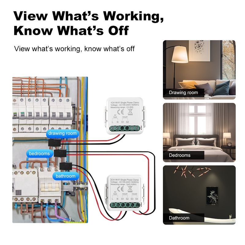 5.Real-time monitoring your home electricity usage(Eetection-measured current 0.2A-80A)
