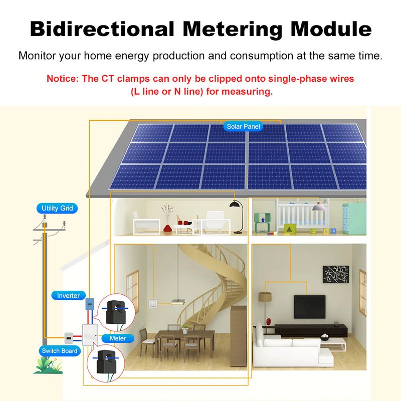 6.Bidirectional metering module(the CT clamps can only be clipped onto single-phase wires(L line or N line)for measuring)