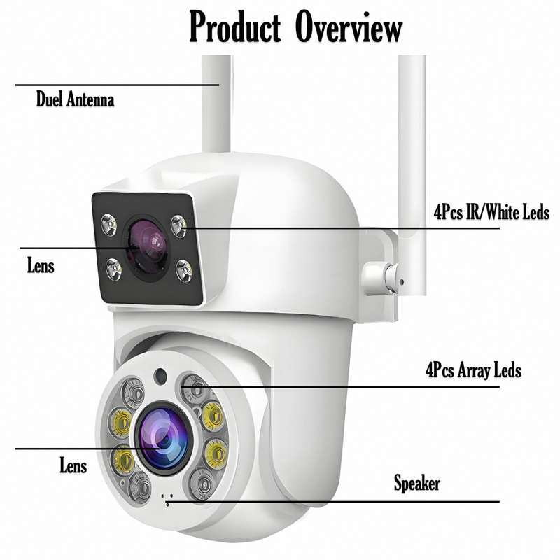 -Dual-lens dual-sensor dual-screen, wide-angle viewing + long distance viewing to achieve clear monitoring from far and near;