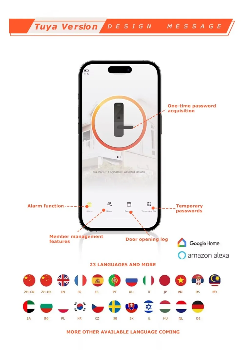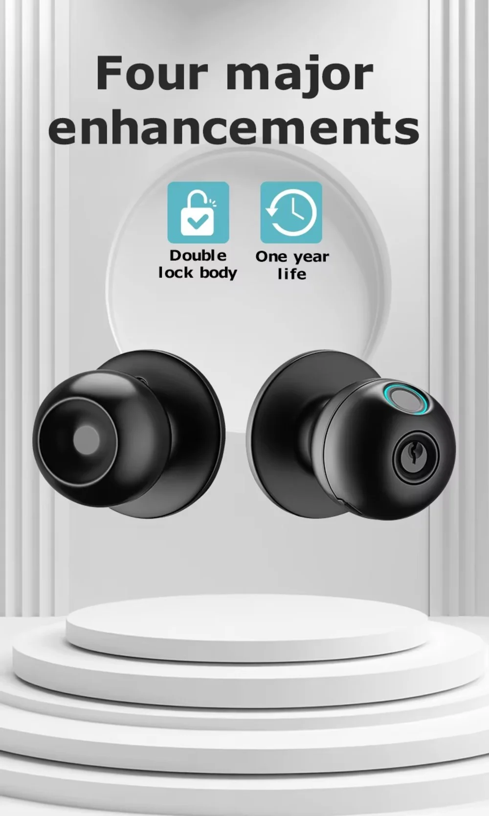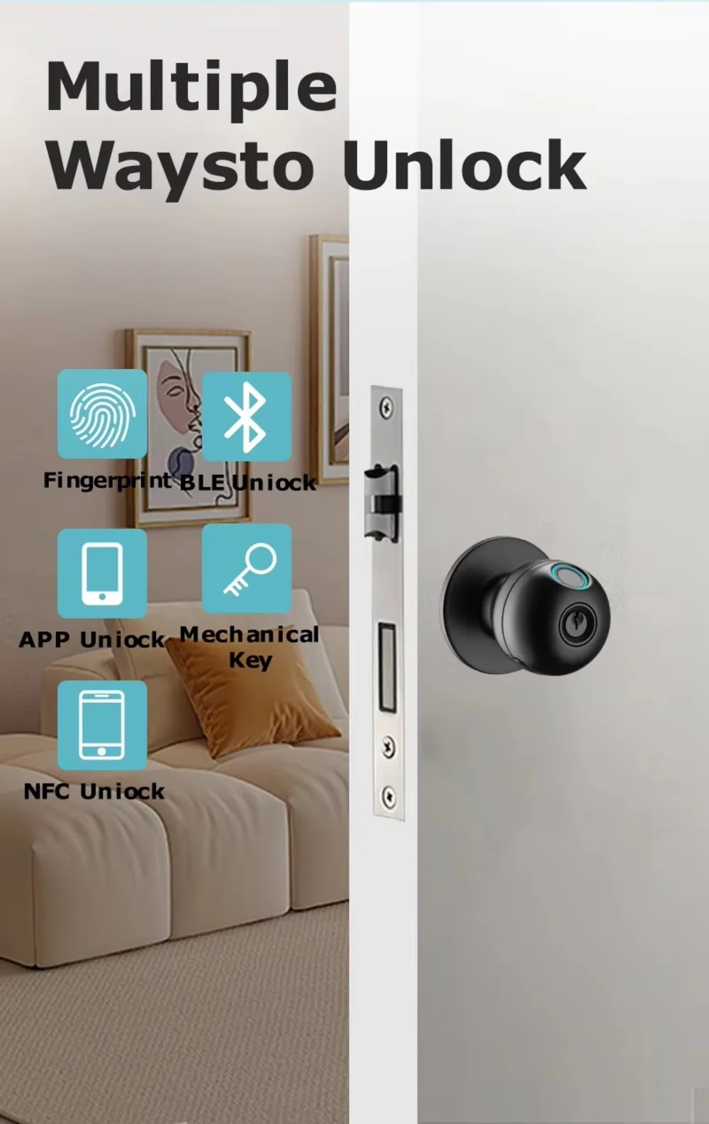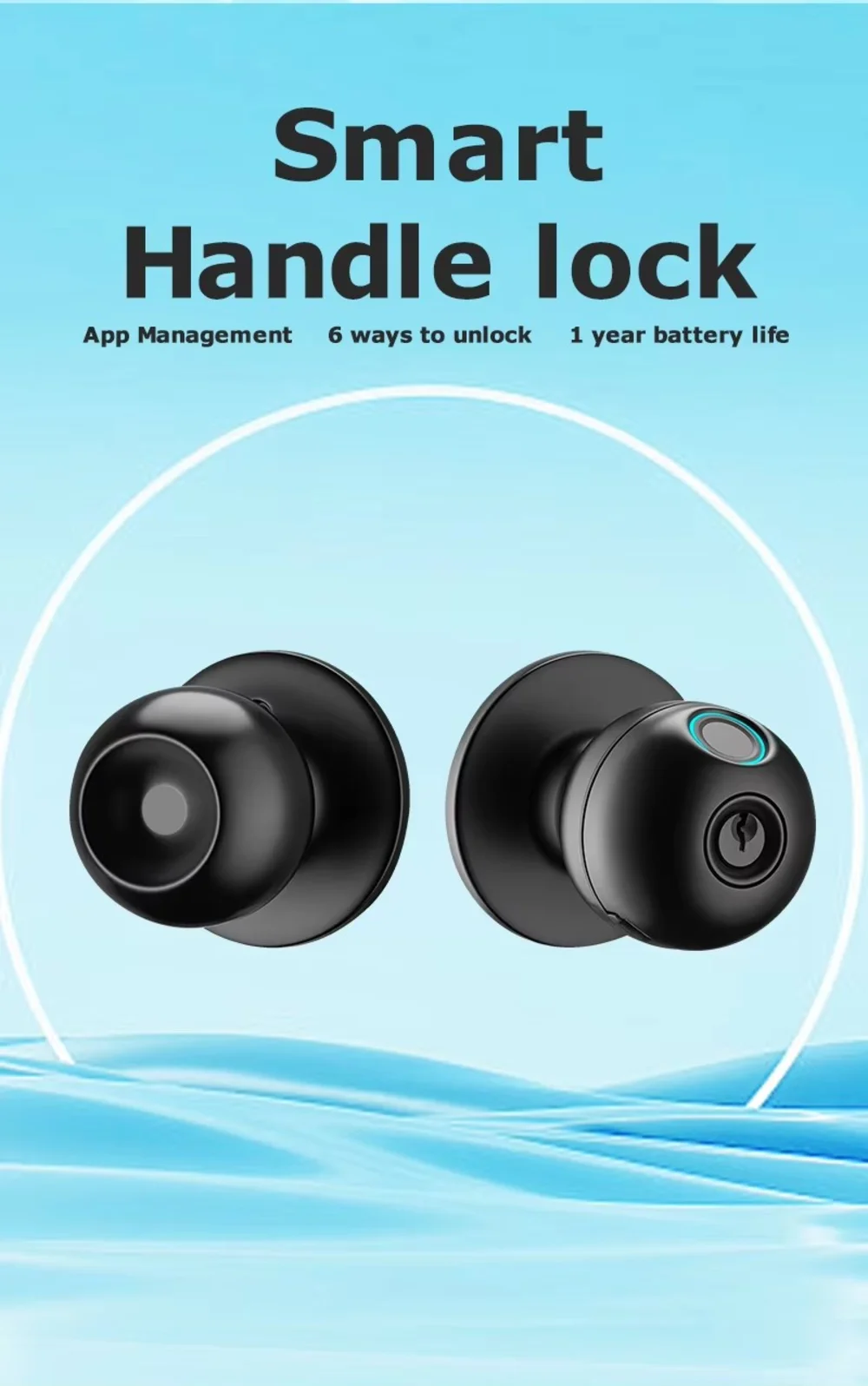 Tuya App Control Smart Wood Door Lock Easy Installation Intelligent Keyless Cylinder Ball Knob Fingerprint Recognition