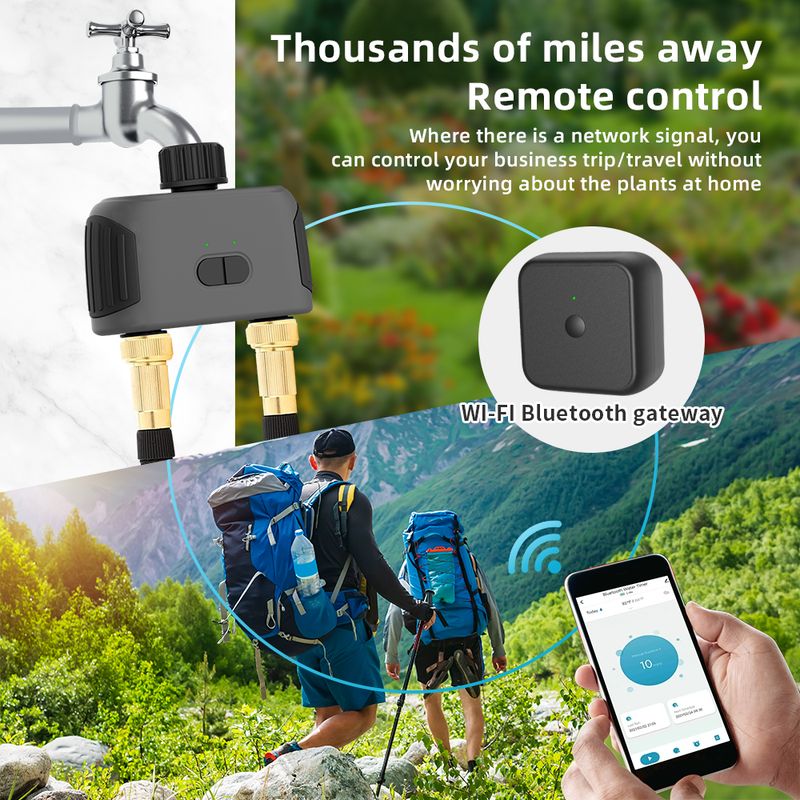 Tuya Bluetooth 2-Way Intelligent Water Timers Rain Delay Watering Controller Smart Garden Irrigation Sprinklers WiFi Gateway