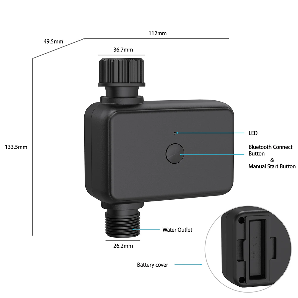 This water timer has the ability to allow you to manually water without disturbing the programmed schedule. Manual is used to test equipment, run an extra watering cycle in an area, or to use the hose faucet without removing the timer. Press the ON/OFF button to activate manual watering. Using the app you can set how long you want the preset manual cycle to run for.