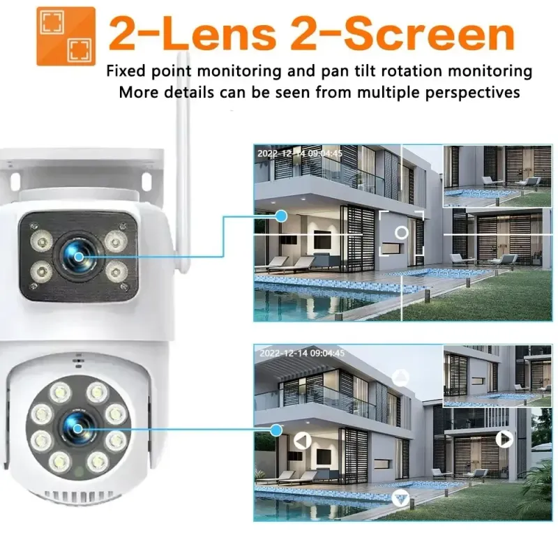 - Dual-lens dual-sensor dual-screen, wide-angle Viewing + Long Distance Viewing to achieve clear monitoring from far and near;