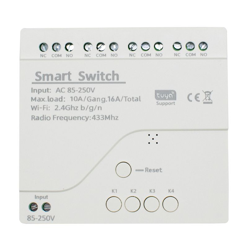 This product is a 4 channels universal WiFi wireless smart switch with RF 433MHz module, for your smart home system to remotely and automatically turn on/off home appliances and electronic devices by phone APP. It also can be controlled by RF remote controller indoors. It can connect and control four appliances on APP at the same time, and you can independently turn on/off each of the four gangs. It also supports timing turning on/off the appliances at a specified time, and share to others so that you can control your smart home together with your family. You can also voice control your home appliances by Amazon Alexa, and for Google Home/Nest,IFTTT, and enjoy intelligent life and make your home smarter.