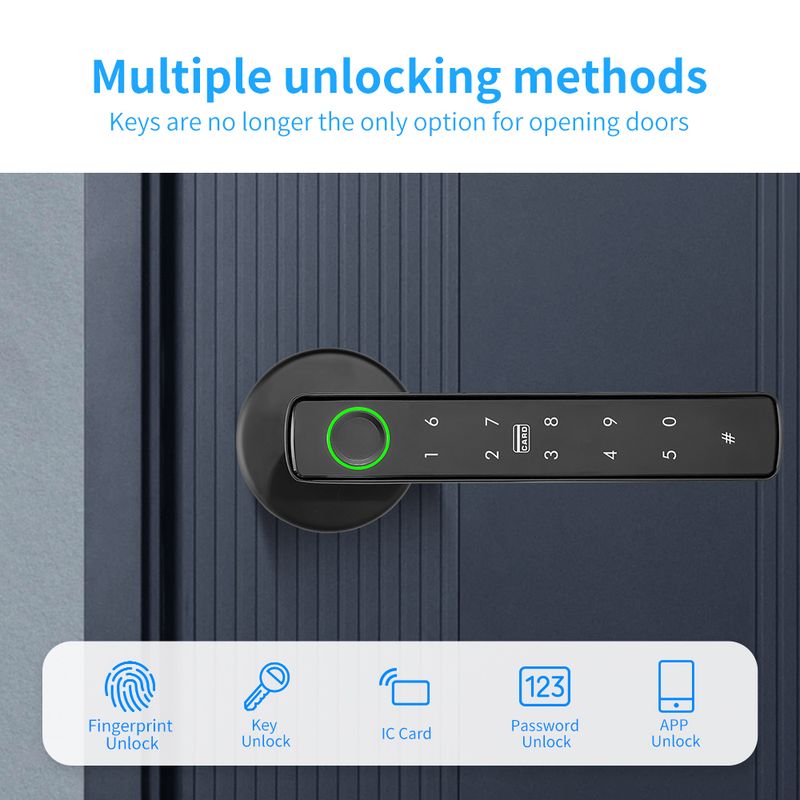 【Multiple unlocking methods】Fingerprint, Tuya APP (Bluetooth), key, IC card, password, flexibly respond to various scenarios, making unlocking both smart and reassuring