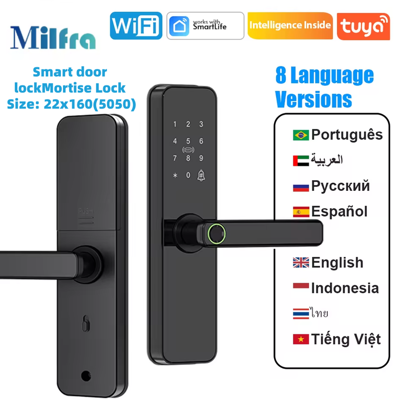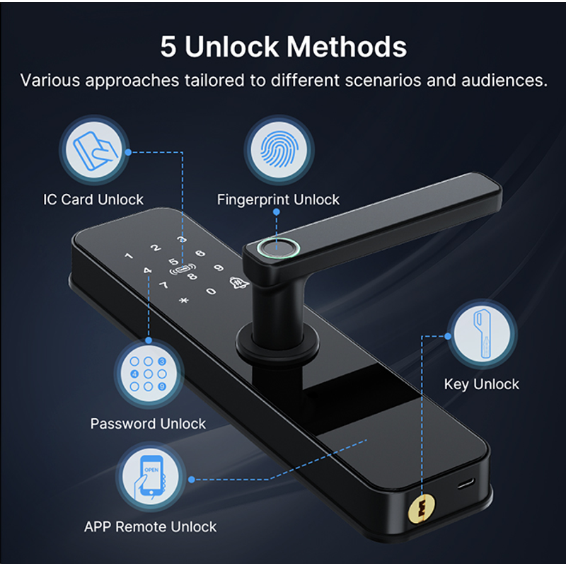 【Smart Lock Fingerprint Lock - Versatile Unlock】- Fingerprint + password + card + mechanical key 4 unlocking methods, independent mode or combination mode. Unlocking method can be set by yourself, but also can open the door with tuya APP(WIFI Connection), very smart and convenient. Suitable for office, home, warehouse.
