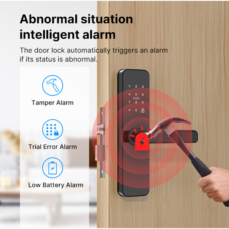 【Tuya Smart Lock - Indubitable Safety】- Your fingerprint is unique in the world, which guarantee the safety without doubt. Taking advantage of technology of semiconductor and biological characteristics is adopted, which avoids the same fingerprint. What's more, made of durable Aluminum Alloy material, its quality is reliable.