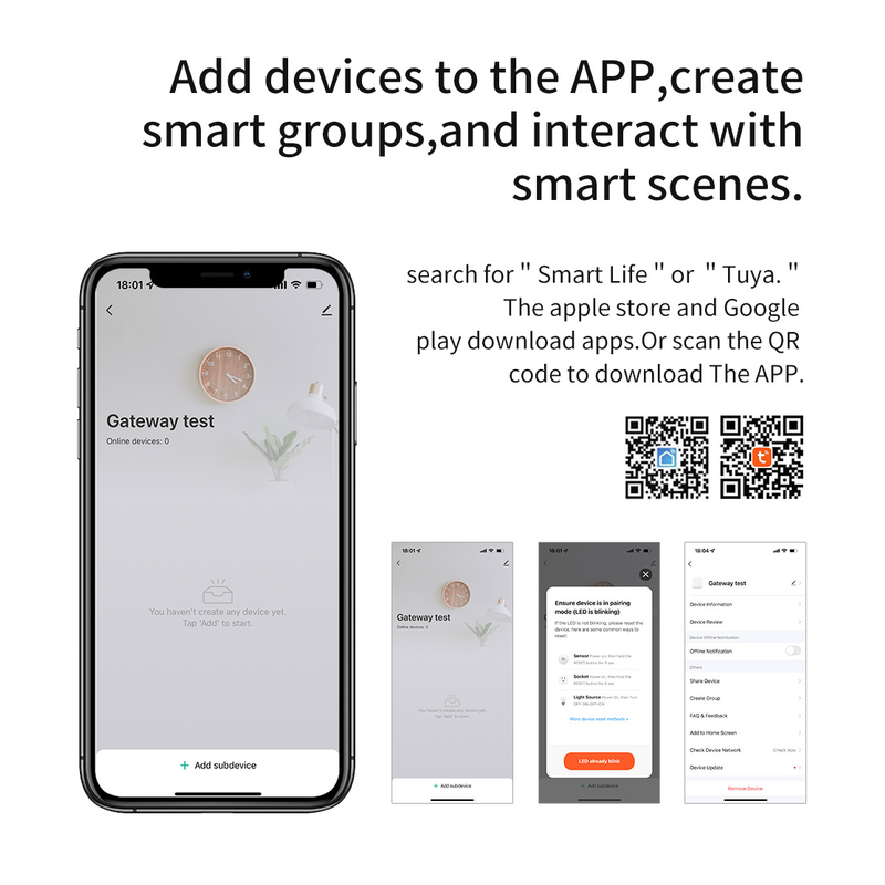 2.The terminal device controlled by the gateway is a Tuya Bluetooth or ZigBee product, and the device only with Tuya WiFi does not belong to this type of product.