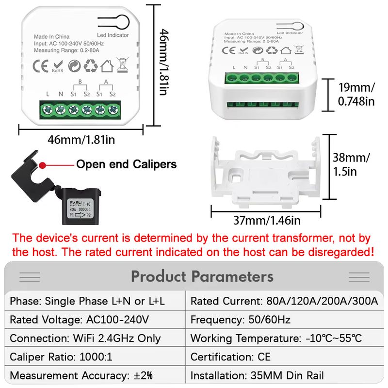 NOTE: The device's current is determined by the current transformer, not by the host. The rated current indicated on the host can be disregarded for reference!