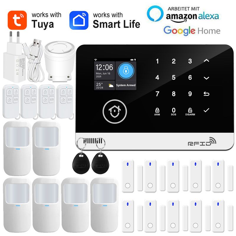 Tuya Smart WiFi GSM Home Security Alarm System - Touch Keyboard RFID APP Control Wireless Anti-Theft with Volume Adjustable