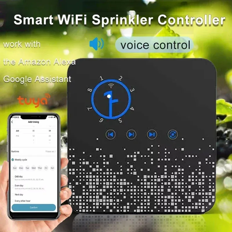 Intelligent sprinkler timer, remote controlling, easy to use, perfect for gardens, courtyards, lawns, farmland, greenhouses, etc. Support weather aware, it can cut off unnecessary watering, save water and money.