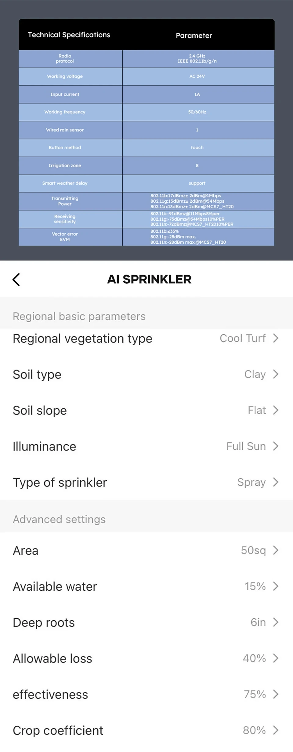 ● Irrigation zone: 8
