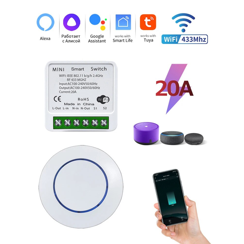 Tuya Smart Wifi Switch RF433Mhz Wireless Light Switch 16A/20A Relay Smart Life App Remote Voice Control With Alexa Google Home