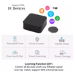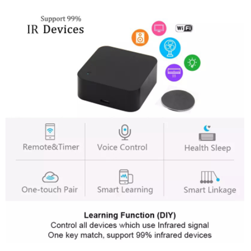 This is a universal WiFi infrared remote control. You can use your smartphone to control various home appliances, such as set-top boxes (STB), TV boxes, TVs, air conditioners, fans, DVDs, etc. It is compatible with most brands. For more details, see the list of brands supported in the app. In addition, it also has a learning function that allows you to copy the key functions of the original remote control into the app.