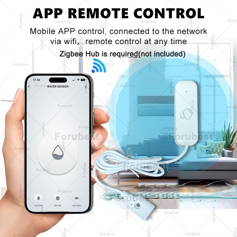 ăReal-time detectionăPlace the sensor where it needs to be detected,and when water comes to contact with the detection probe of the sensor ,the probe is waterproof,the sensor will upload water status information to App.