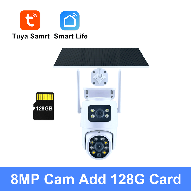 Tuya Solar WiFi Outdoor Waterproof Cam PIR Auto Tracking 4K 8MP Dual Len PTZ Smart Camera Security Network Monitor Cam