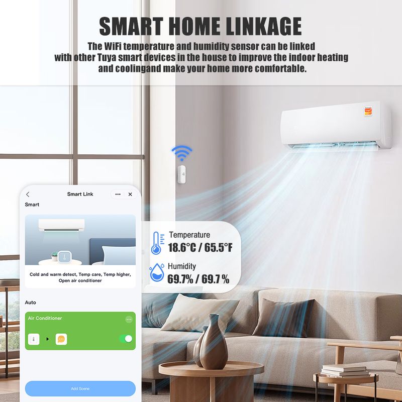 Tuya Thermohygrometer Smart Home Products WiFi Temperature Sensor Smart Life Monitoring Voice Control Home Automation