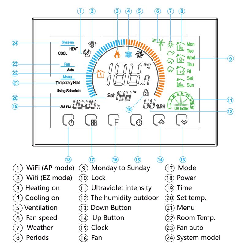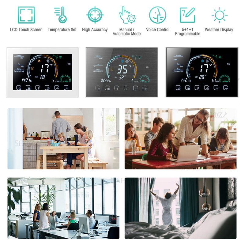 TUYA Wi-Fi Smart Large Colorful Screen Room Programmable Air Thermostat WIFI for Switch Heating Cooler Bridge Voice Alexa