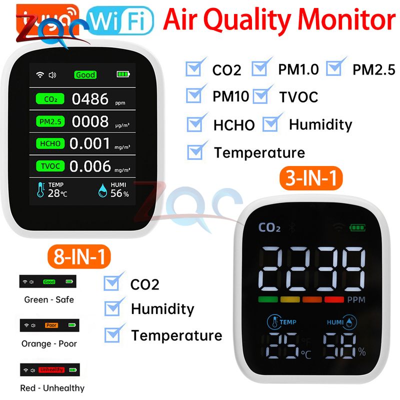Tuya WIFI 8 In 1 Air Quality Monitor CO2 HCHO TVOC PM1.0 PM2.5 PM10 Tester Temperature Humidity Meter Carbon Dioxide Detector