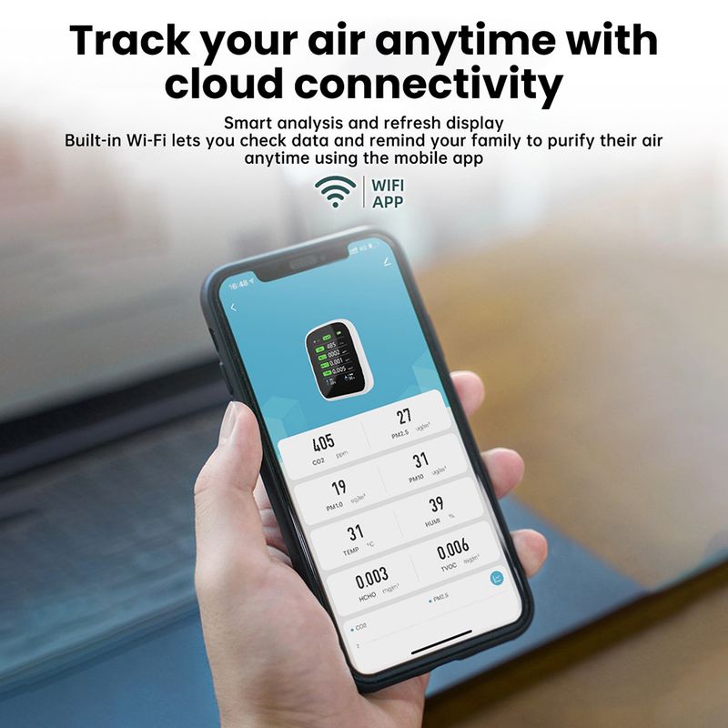 3. Support WIFI connection, remote data viewing through APP, real-time monitoring of air quality dynamics