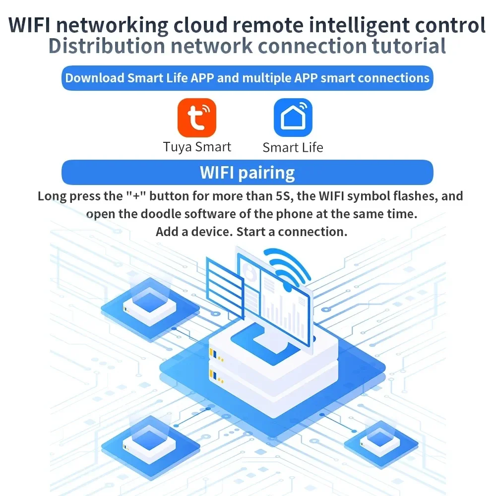 Cellphone Remote APP Control: Download SmartLife APP or graffiti intelligent APP connection, realize WIFI network cloud remote intelligent control. Where there is signal, you can control the device whenever and wherever you want, unlimited distance.