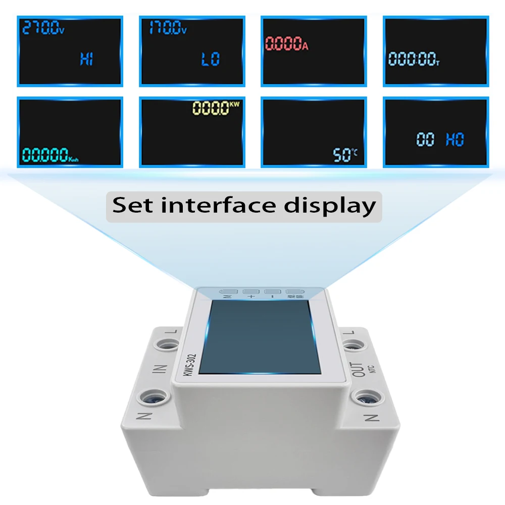 3.Multi-functional Design: Voltage, current, power, timing, electric energy, temperature, frequency and power factor 8in1 design, convenient for users to understand the use of electric energy, realize the visualization of electricity consumption. And with power-off memory function.