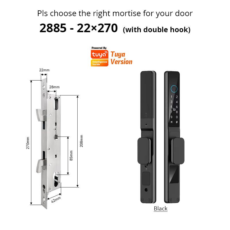 Tuya Wifi APP Waterproof Smart Fingerprint Lock Password Card Aluminum Sliding Door Lock For Outdoor Pull Push Sliding Door