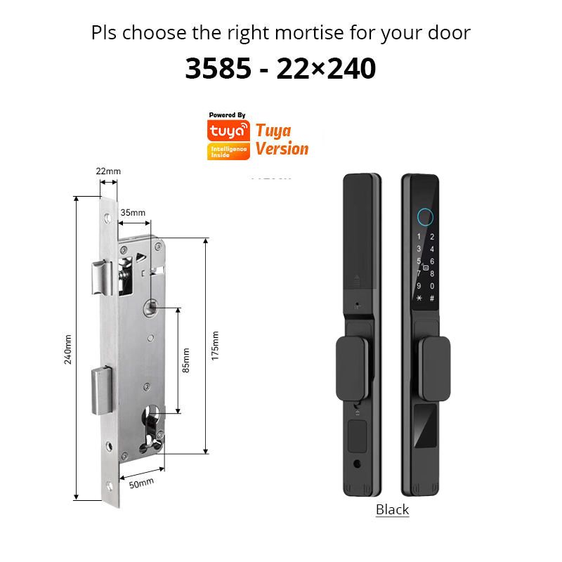 Tuya Wifi APP Waterproof Smart Fingerprint Lock Password Card Aluminum Sliding Door Lock For Outdoor Pull Push Sliding Door