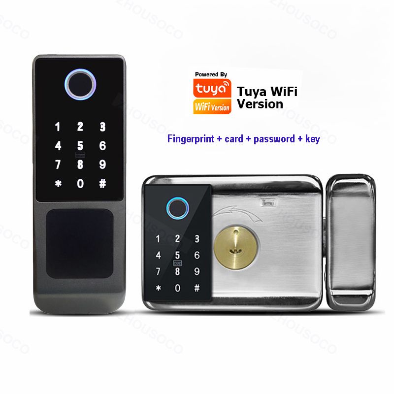Tuya WIFI Double Side Fingerprint Lock Waterproof Outdoor Gate Passcode Rfid Card Keyless Smart Door Lock