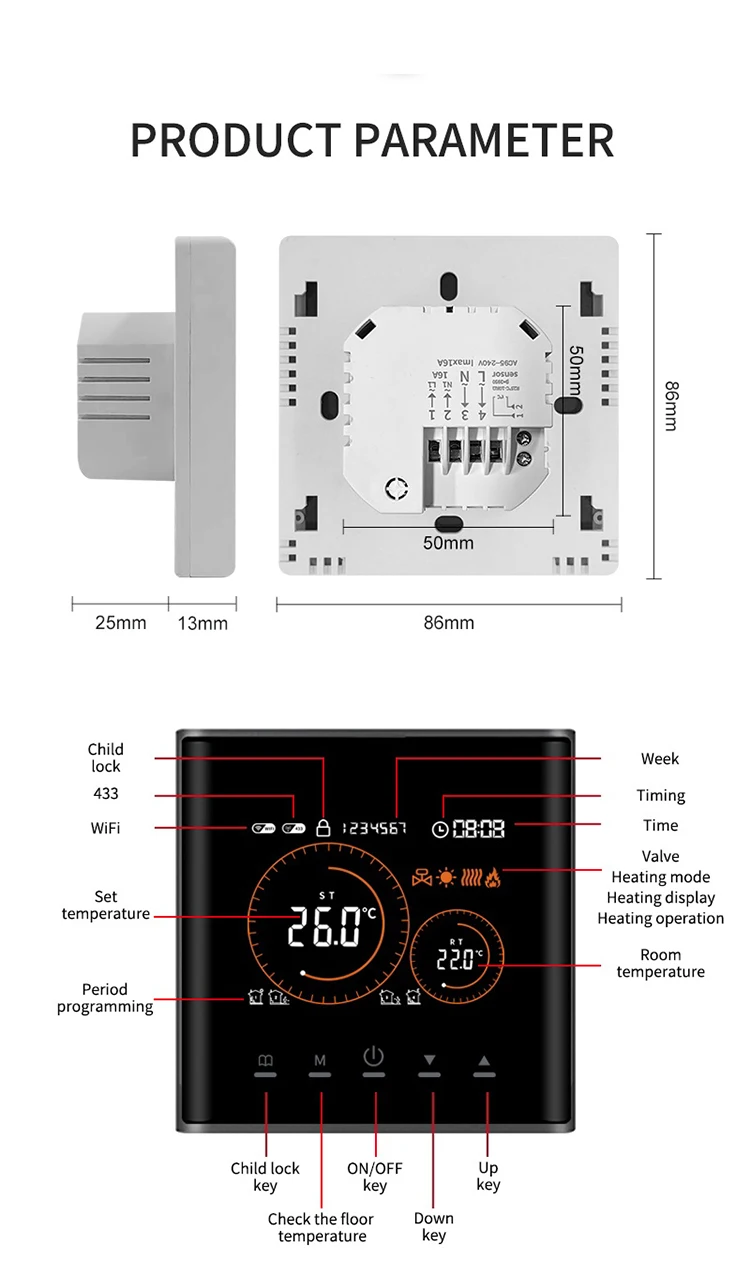 Tuya WIFI Floor Heating Thermostat 16A 3A Smart Home Underfloor Thermoregulator with Alexa Google Yandex Temperature Control
