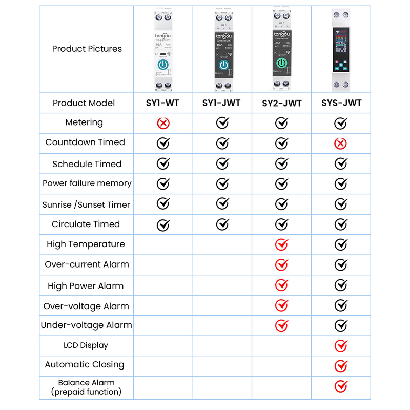 TUYA WIFI Smart Circuit Breaker With Metering 1P 50A 63A DIN Rail for Smart Home wireless Remote Control Switch by APP TONGOU