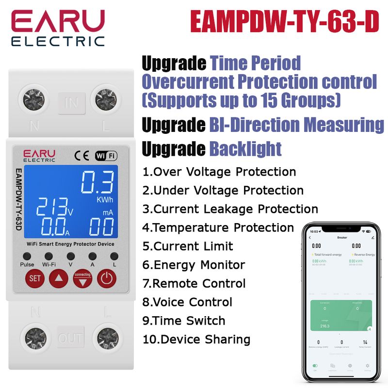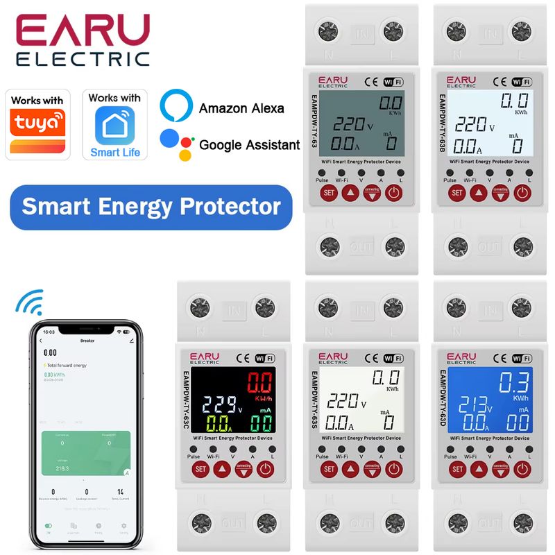 Tuya WiFi Smart Energy Meter Power kWh Meter Earth Leakage Over Under Voltage Protector Time Relay Device Switch Circuit Breaker