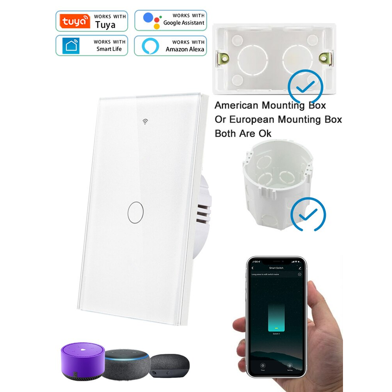 Tuya WiFi Smart Light Switch US Standard Work With Alexa Google Home Wall Touch Switch 110V 220V RF433Mhz Remote 1 2 3 4 Gang