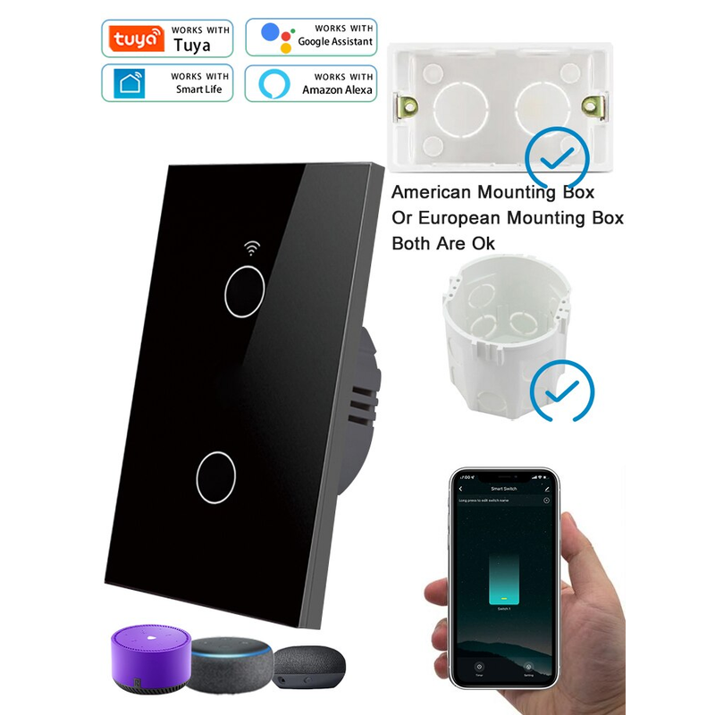 Tuya WiFi Smart Light Switch US Standard Work With Alexa Google Home Wall Touch Switch 110V 220V RF433Mhz Remote 1 2 3 4 Gang