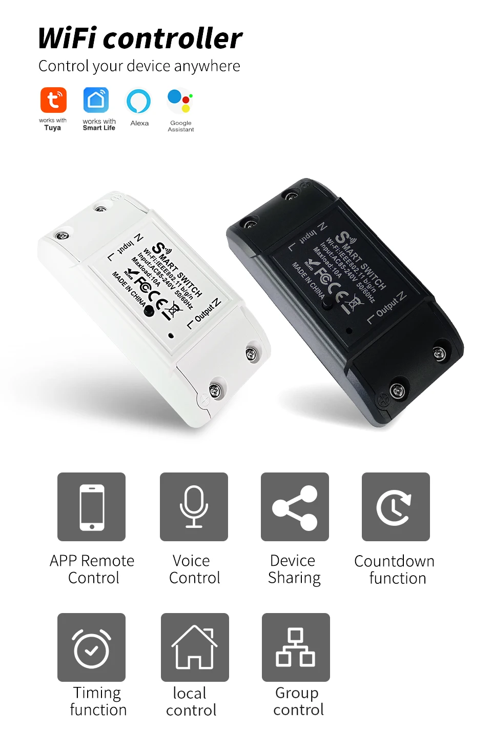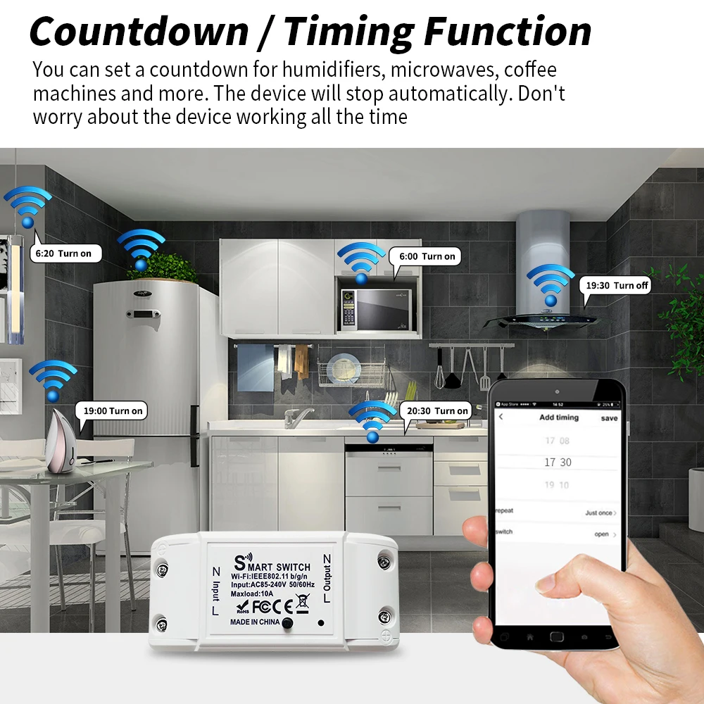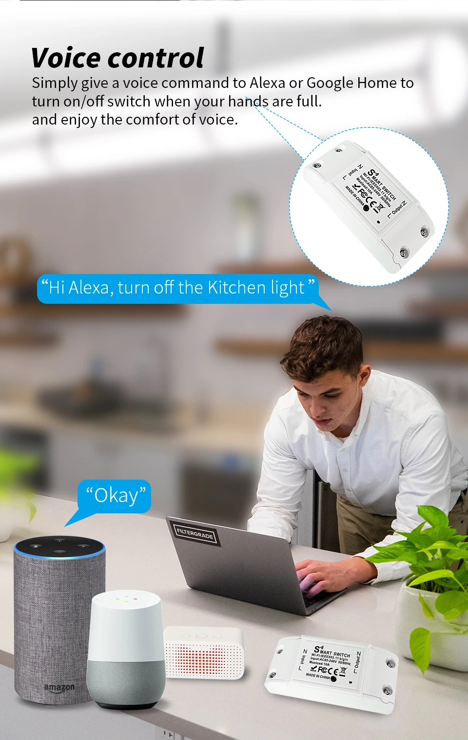 Simply give a voice command to Alexa or Google Home to turn on/off switch when your hands are full,and enjoy the comfort of voice