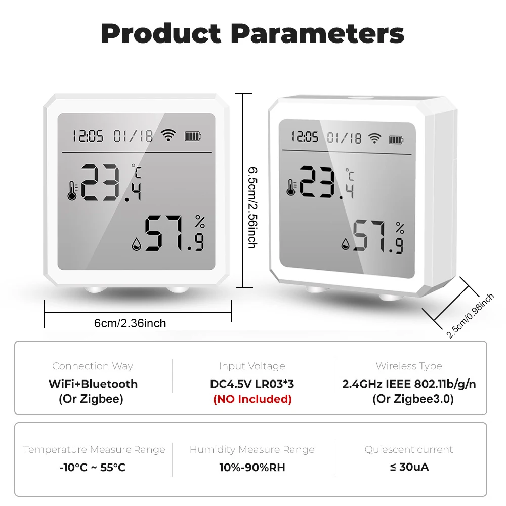 Tuya WiFi/Zigbee Smart Temperature Humidity Sensor with Screen Display Hygrometer Thermometer Support Alexa Google Assistant