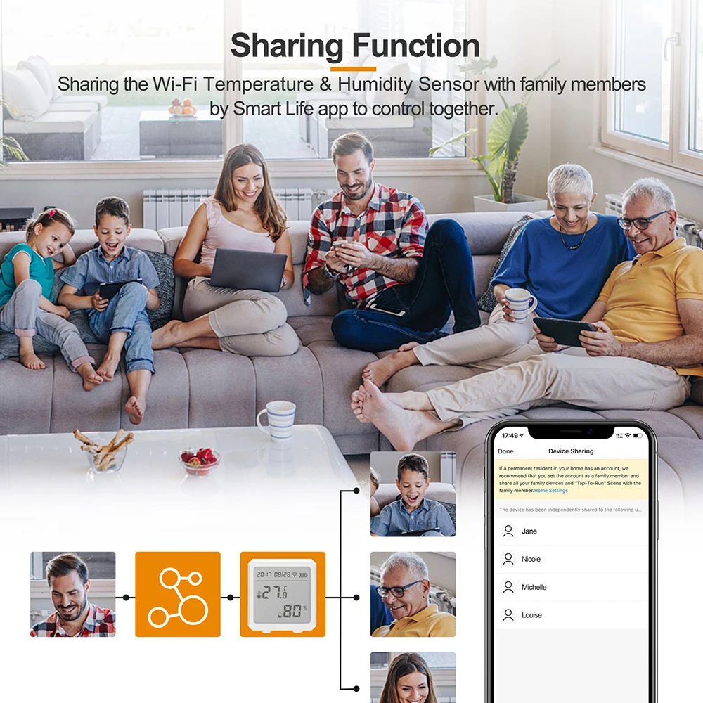 This product supports the "Tuya Smart" and "Smart Life" apps, You can remotely monitor the temperature and humidity at home anytime, anywhere
