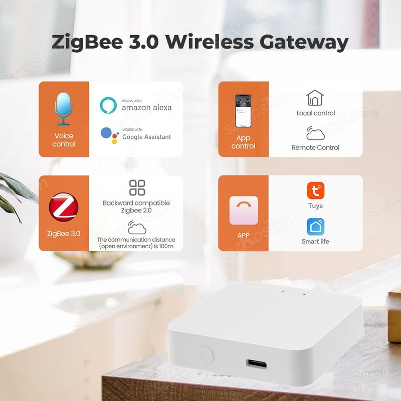 8.The gateway enables you to control Tuya ZigBee/Bluetooth devices such as plugs, switches, bulbs and sensors, etc. It is a must for all Tuya ZigBee products.Szkoston.