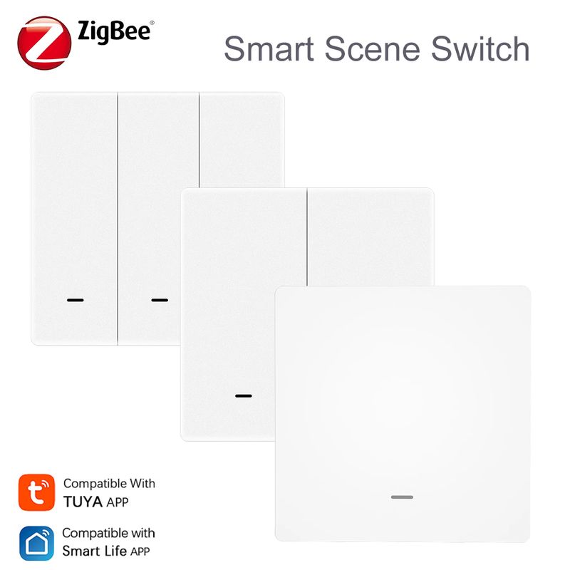 Tuya Zigbee 3.0 Smart Scene Button Switch 1/2/3 Gang Smart Home Wireless Push Remote Controller Battery Powered Devices Linkage