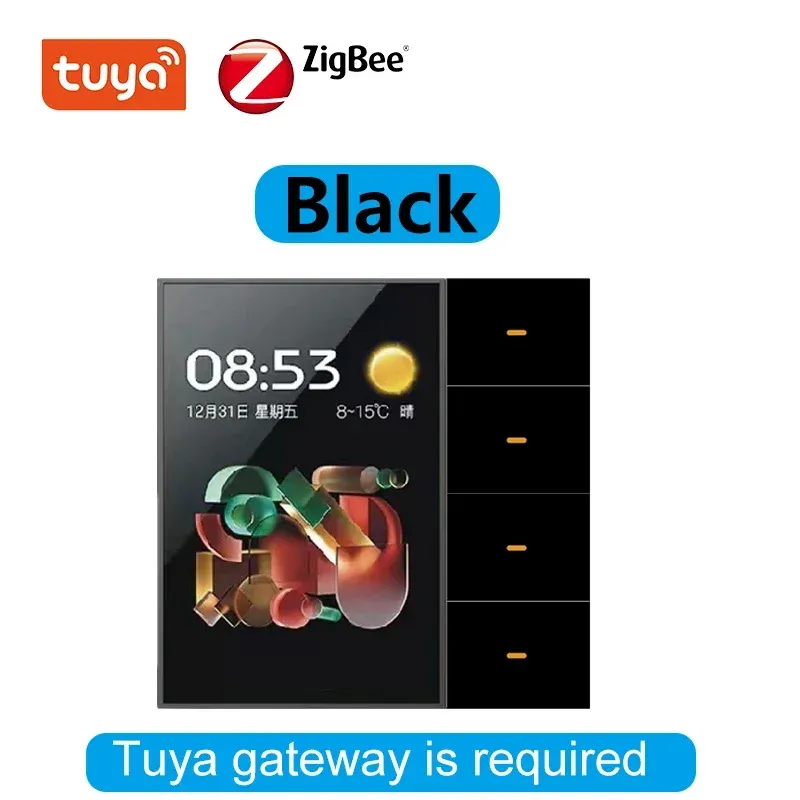 Tuya Zigbee 3.5 Inch Smart Wall Switch Touch Screen 4 Groups Switch 8-way Scene Radar Sensor Dimming Switch Curtain Smart Home