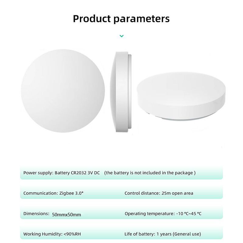 Tuya ZigBee gateway is a must for this Tuya ZigBee smart button scene switch,which is a bridge for all ZigBee smart devices under Tuya Smart APP for normal use,ensures its wireless intelligent control anywhere you like with its mini compact button design.