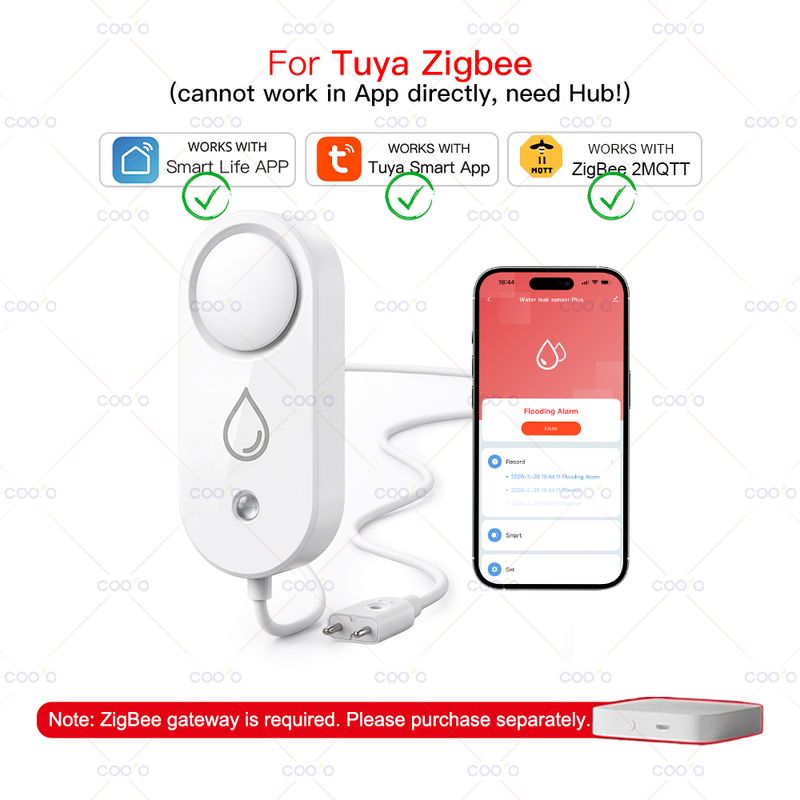 Tuya Zigbee Water Leak Detector Smart Water Sensor with Probe, 110dB Audio Alarm Rapid Leak Detection for Home Kitchen Bathroom