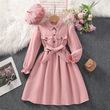 This girls' casual dress features a stylish lapel collar and stylish long sleeves, making it a trendy addition to any wardrobe.