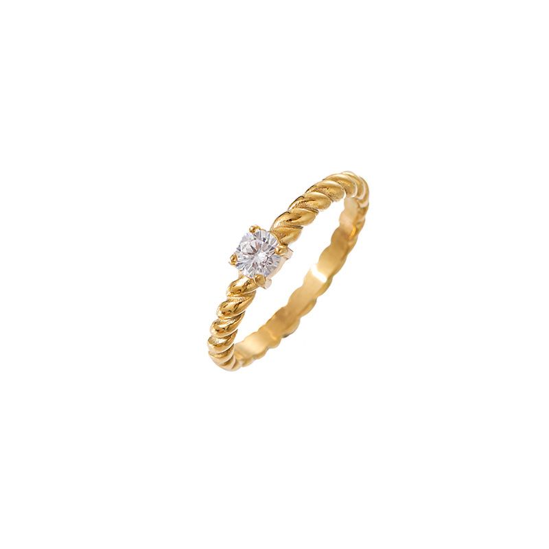 Twist Inlaid Zircon Claw Diamond Ring Light Luxury All-matching Gold No 7