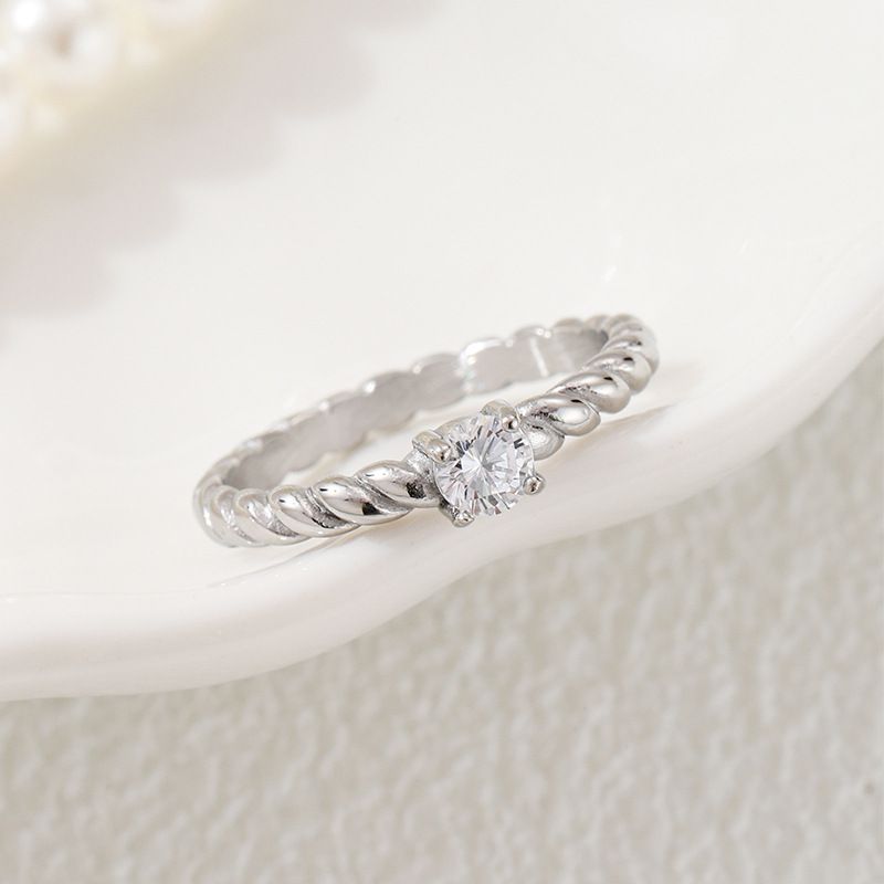 Twist Inlaid Zircon Claw Diamond Ring Light Luxury All-matching Silver No 10
