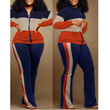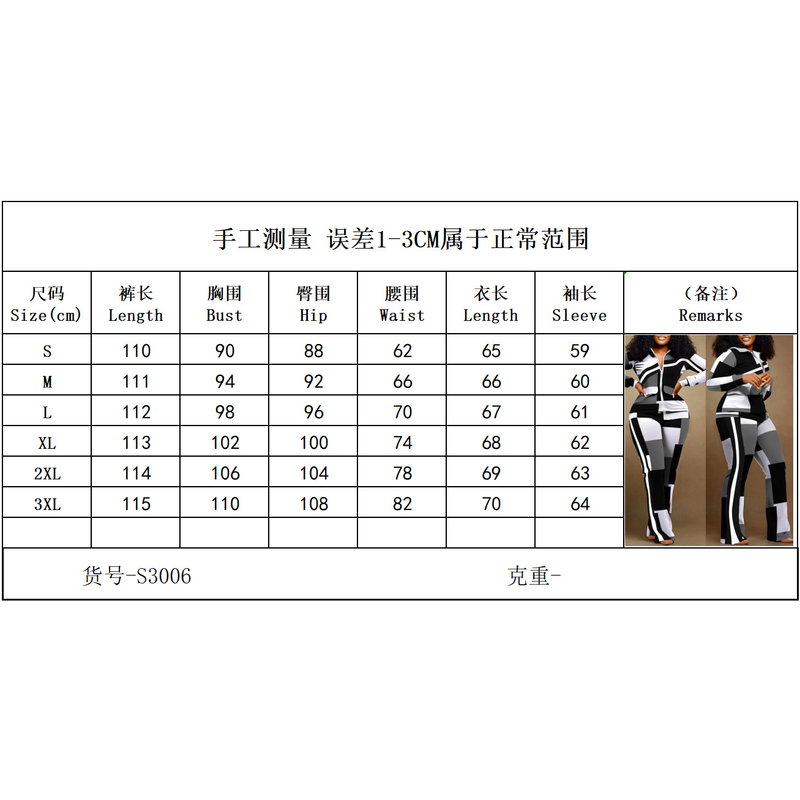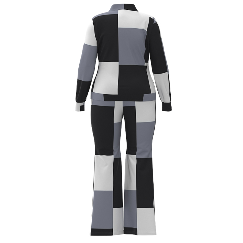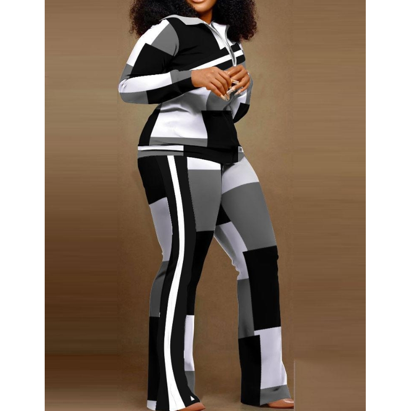Two Piece Set Women Outfit 2023 Autumn Fashion Geometric Print Stand Collar Long Sleeve Zip Up Top & Casual Sporty Pants Set