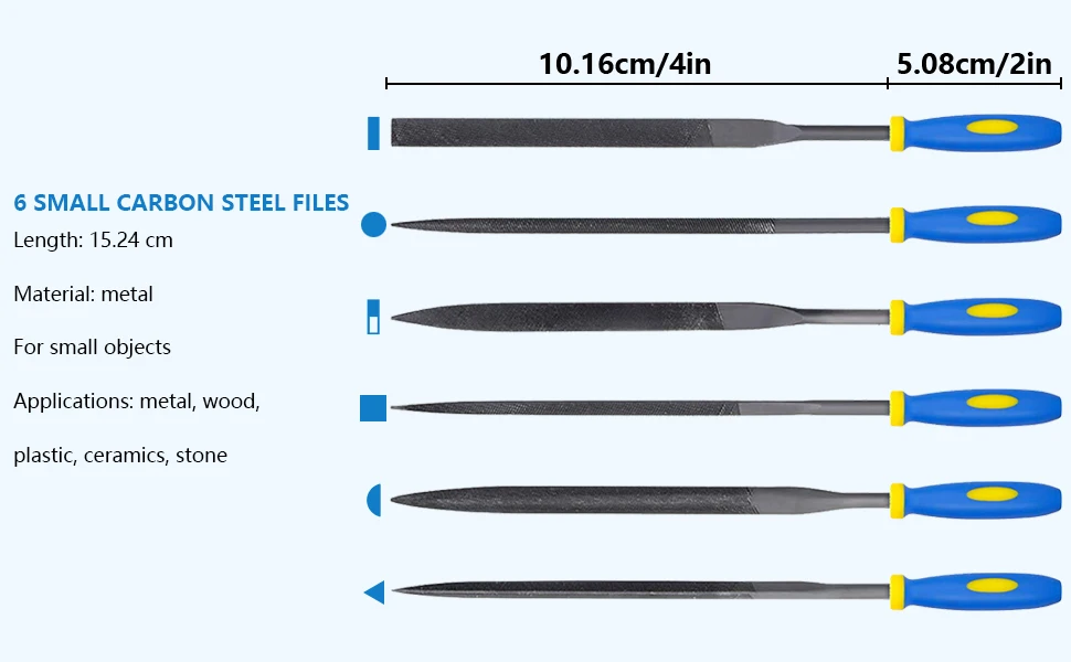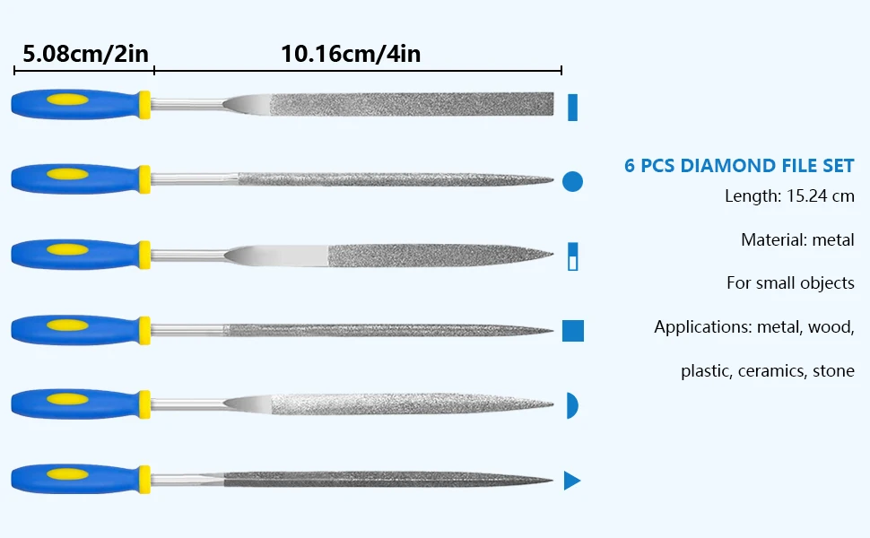 PACKAGE INCLUDE: 6 Piece Carbon Steel File Set + 6 Piece Diamond File Set + 1 Storage Bag