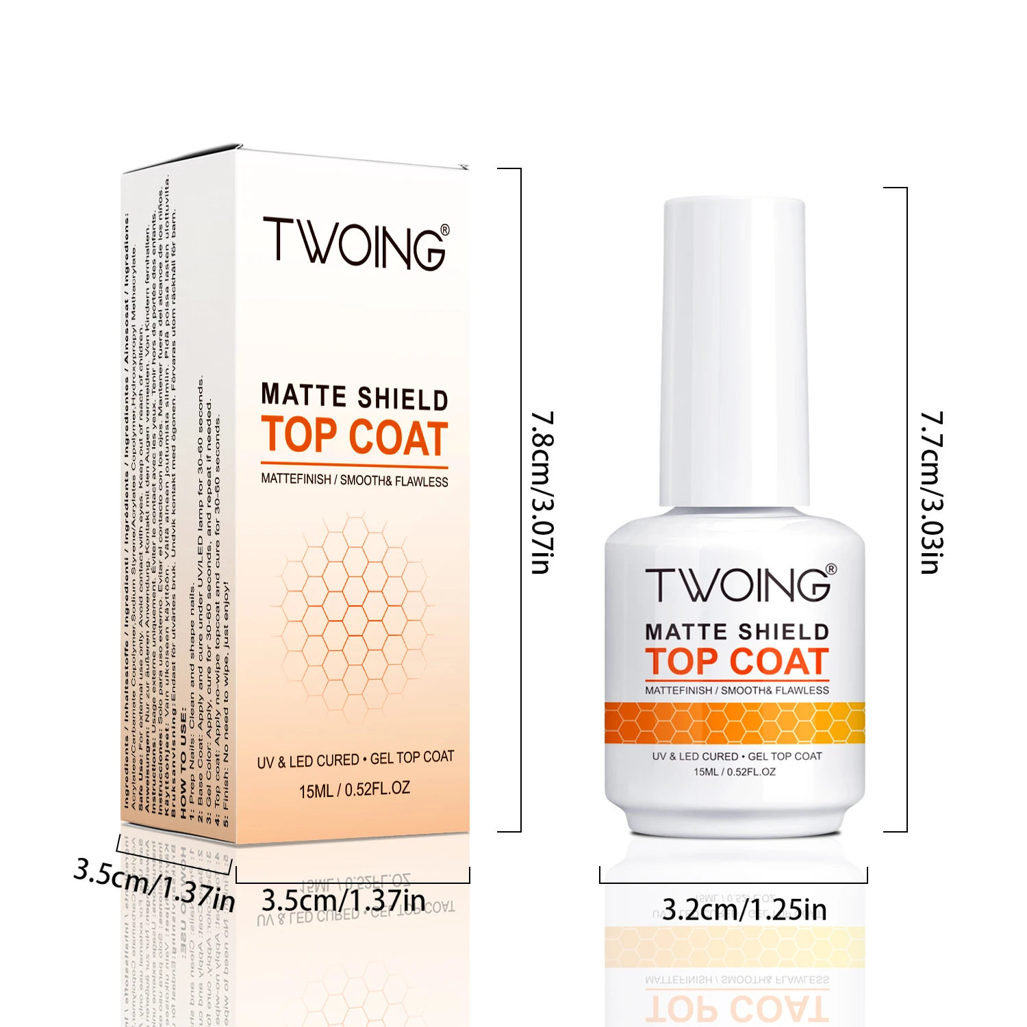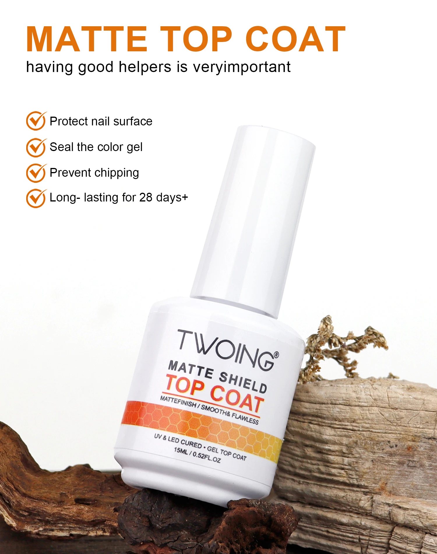 TWOING 15ml Velvet Matte Top Coat Gel Nail Polish Matte Top coat No Wipe Sealer Gel Finish Manicure Nail Art Salon Quality