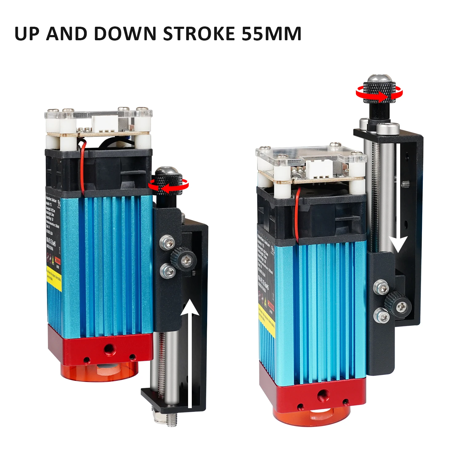 4. Large Adjustment Stroke: The maximum lifting stroke is 55mm, which enables the laser to engrave thicker items, such as skateboards, wood etc. Lightweight, 0.32 pounds (146g), does not affect the speed and accuracy of the XY axis of the engraver.