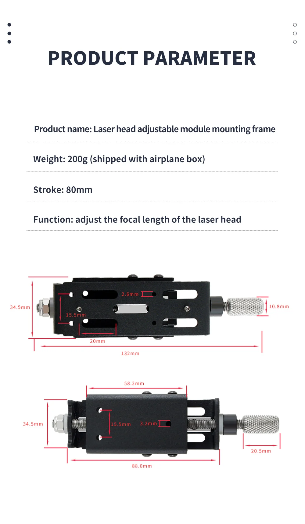 2. Focusing is More Convenient: Just turn the knob to adjust the height of the z-axis laser module. It made adjustment of laser so much easier. It can remove all excess play between the laser and the project.